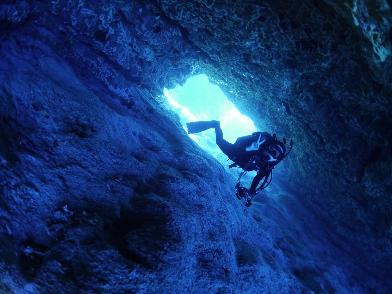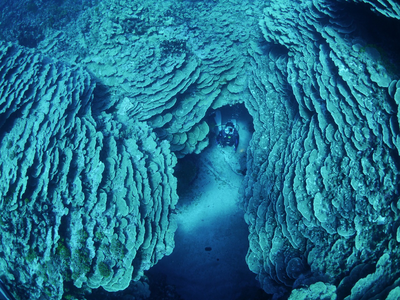 天から降り注ぐ神秘的な光の柱は、時間とともに変化していき、時にはカーテンのように広がって見えたり、放射線のように見えたりと様々な表情を楽しめます。洞窟の奥には、アカマツカサやリュウキュウハタンポなどが生息。洞窟の外にはミクロネシアの固有種の小物が多く、運がよければナポレオン等の大物にも遭遇することも。
